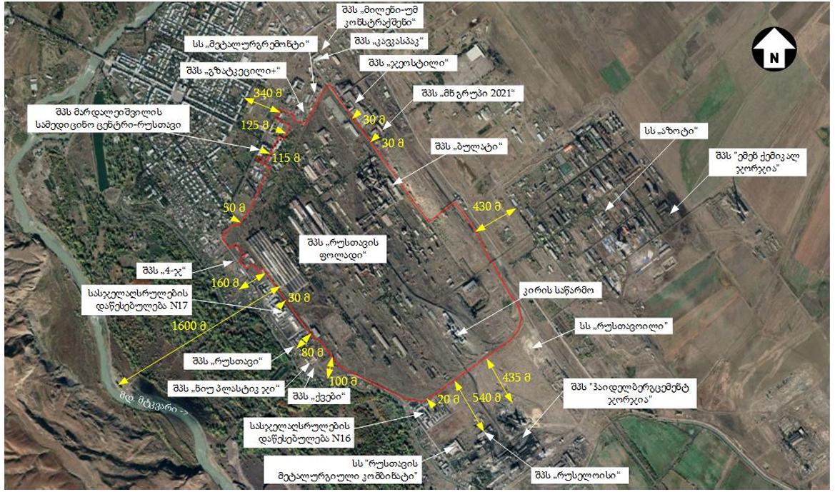 445 მ, შპს „რუსთავი“- დაცილების მანძილი 80 მ, შპს „გზატკეცილი +“ – დაცილების მანძილი 35 მ და შპს „არსემ კორპი“ (ბულატი)- დაცილების მანძილი 5 მ.