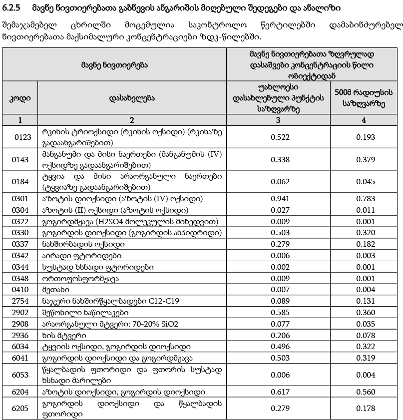 საწარმოზე გაცემულია გარემოსდაცვითი გადაწყვეტილებები – 2019წ. – კირის წარმოება, მეტალურგიული წარმოება, ცემენტის წარმოება. (ცემენტის წარმოება არ განხორციელებულა)